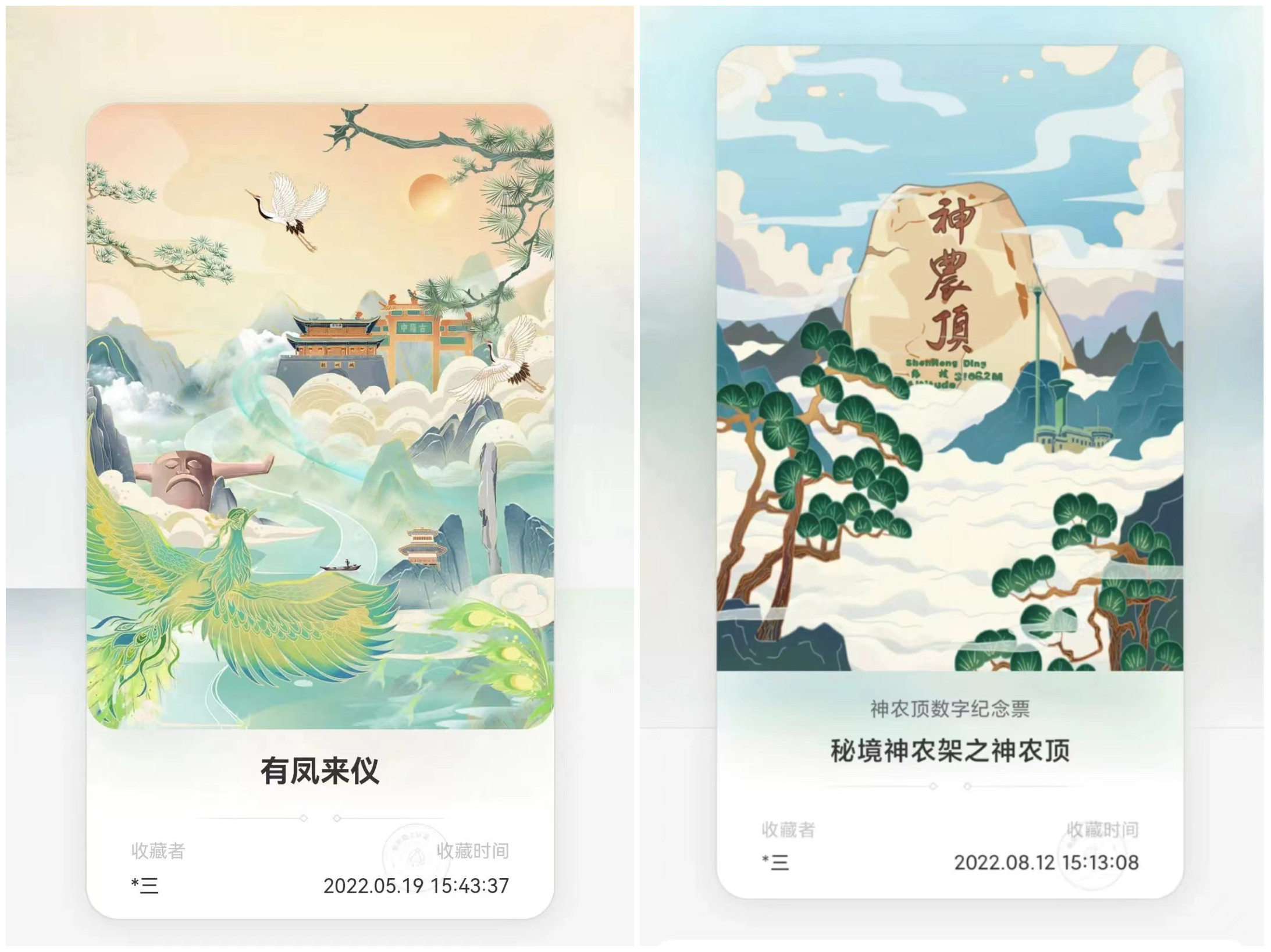 近日,由“游湖北”平臺(tái)創(chuàng)作的“有鳳來(lái)儀”及“秘境神農(nóng)架”系列數(shù)字紀(jì)念票獲2022全國(guó)景區(qū)首屆數(shù)字文創(chuàng)紀(jì)念票大賽“優(yōu)秀獎(jiǎng)”。