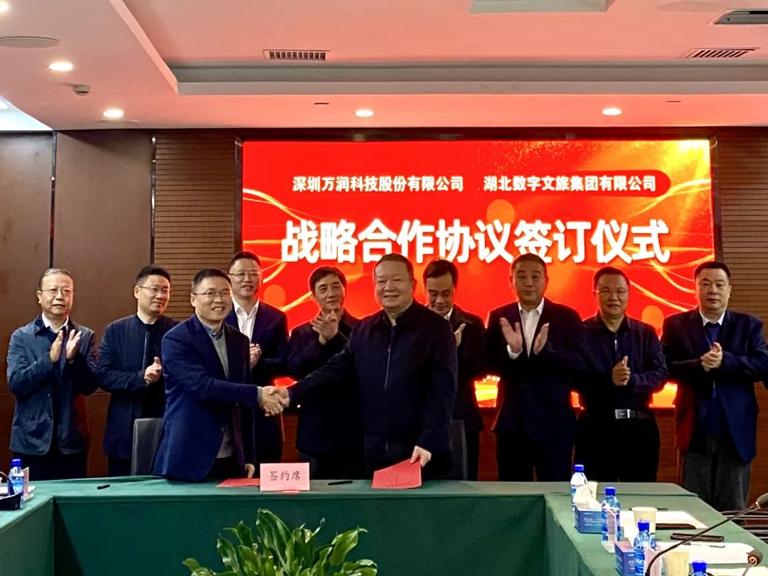 省文化和旅游廳相關(guān)處室負(fù)責(zé)人;湖北文旅集團(tuán)黨委委員、副總經(jīng)理羅欽,深圳萬潤(rùn)科技股份黨委委員、副總裁汪軍,黨委委員、副總裁金平,長(zhǎng)江萬潤(rùn)科技董事長(zhǎng)何克紅及相關(guān)負(fù)責(zé)人,湖北文旅集團(tuán)數(shù)智化與科技創(chuàng)新中心負(fù)責(zé)人,數(shù)旅集團(tuán)相關(guān)負(fù)責(zé)人參加簽約儀式。