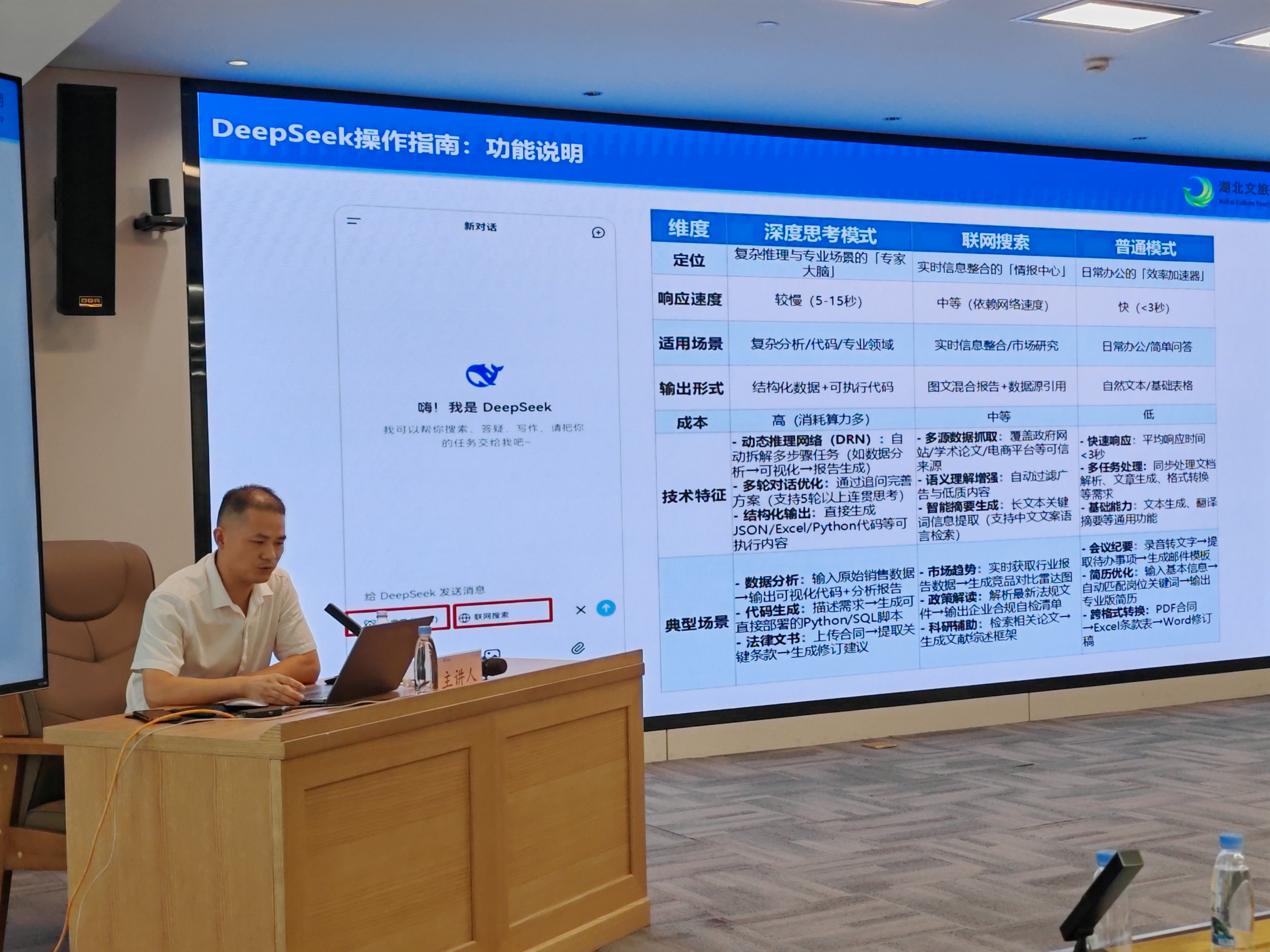培訓最后,公司集團業(yè)務事業(yè)部吳鵬以《解鎖AI+DeepSeek在辦公場景的實踐與應用》為主題展開分享。結合辦公實際需求,詳細介紹AI+DeepSeek技術在文檔處理、數據分析、PPT制作等辦公場景中的具體應用場景與實踐案例,演示該技術如何提升辦公效率、降低人工成本、優(yōu)化工作質量。