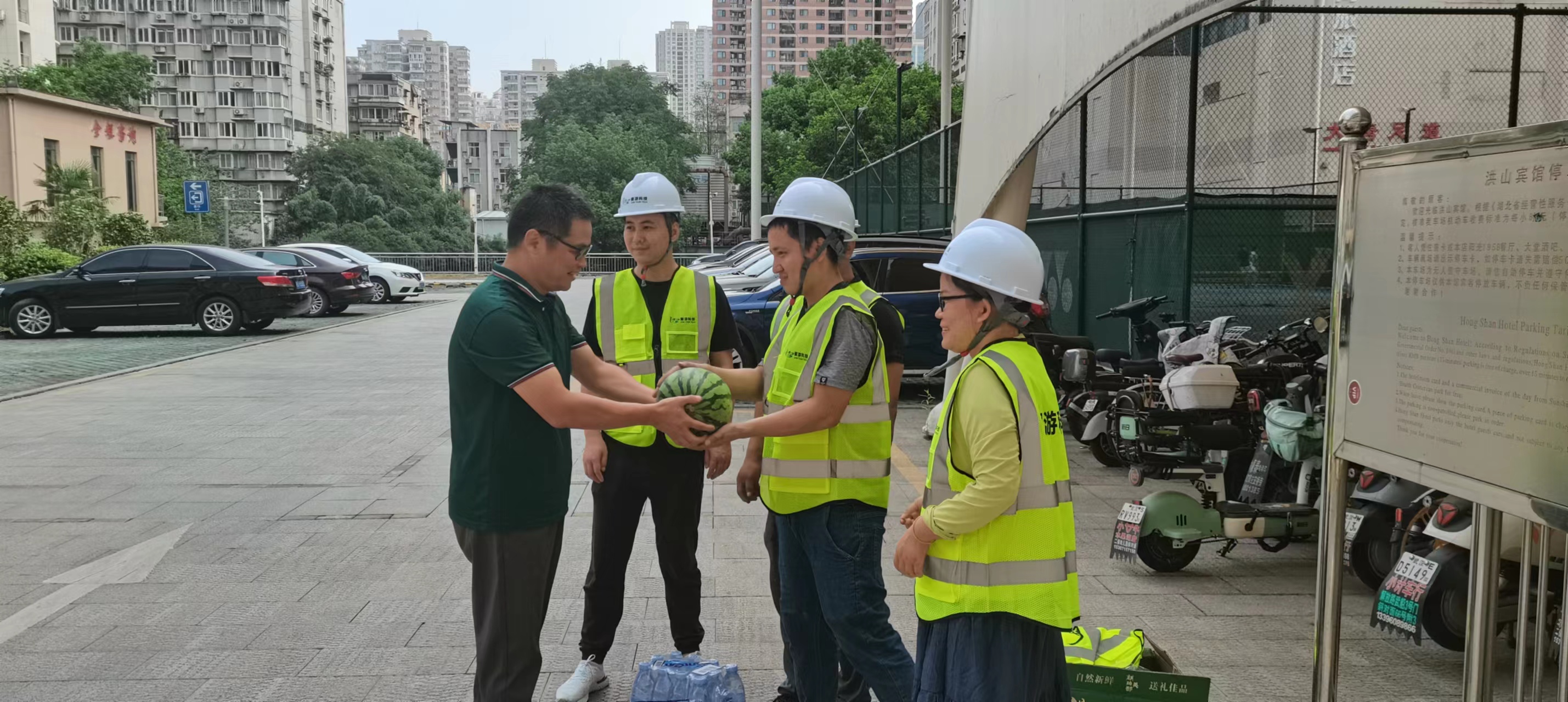 8月9日,數(shù)旅集團工會“關(guān)愛職工 夏送清涼”活動走進洪山賓館項目施工現(xiàn)場,為項目工地一線員工送去工會的關(guān)懷,現(xiàn)場發(fā)放西瓜、涼茶等防暑降溫物品。慰問組肯定全體參建人員不怕吃苦、迎難而上、艱苦奮斗的精神,同時勉勵大家要把握良好發(fā)展機遇,筑牢安全發(fā)展底線,確保項目如期完成。
