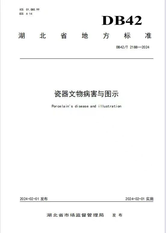 湖北首例可移動(dòng)文物保護(hù)地方標(biāo)準(zhǔn)發(fā)布實(shí)施。近日,由湖北省文化和旅游廳指導(dǎo),湖北省博物館主編,湖北省標(biāo)準(zhǔn)化與質(zhì)量研究院、湖北省古建筑保護(hù)中心、武漢大學(xué)歷史學(xué)院參編的湖北省地方標(biāo)準(zhǔn)《瓷器文物病害與圖示》(標(biāo)準(zhǔn)號(hào):DB42/T2188-2024)作為湖北省地方性標(biāo)準(zhǔn)由湖北省市場(chǎng)監(jiān)督管理局正式發(fā)布并實(shí)施。這是國(guó)內(nèi)第一個(gè)瓷器文物病害圖示標(biāo)準(zhǔn),也是湖北首例可移動(dòng)文物保護(hù)行業(yè)地方性標(biāo)準(zhǔn)。