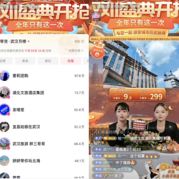 智旅動態(tài)周報(bào) 第157期|數(shù)旅集團(tuán) “雙十一”直播 躋身武漢團(tuán)購帶貨月榜第2名