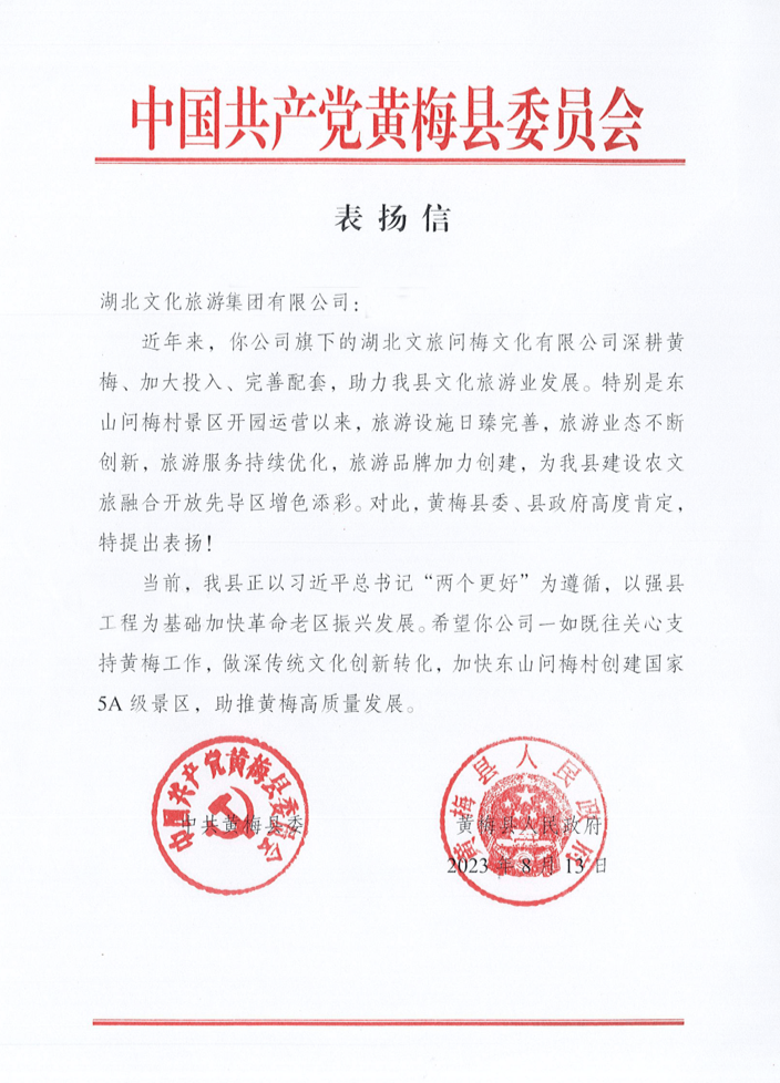 智旅動(dòng)態(tài)周報(bào) 第147期|湖北文旅集團(tuán)獲黃梅縣委縣政府點(diǎn)贊